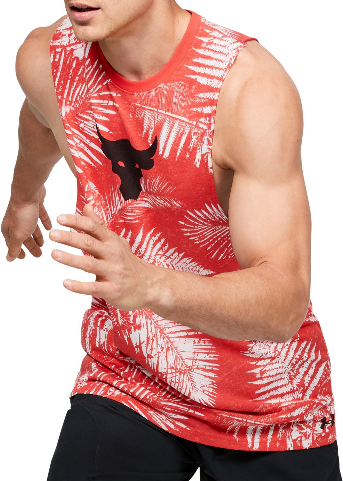 This tank top from Under Armours Project Rock collection boasts the collaborations signature bull motif standing as your inspiration to push yourself to your limits the next time you hit the gym. Tank Tops Sleeveless Ts.
